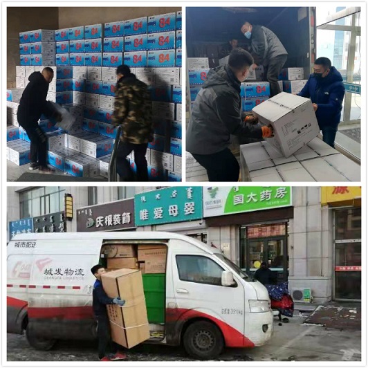 1月27日,城發(fā)物流配送中心工作人員提前結(jié)束假期,為各醫(yī)藥門(mén)店、社區(qū)門(mén)診和醫(yī)院配送醫(yī)療物資和藥品。