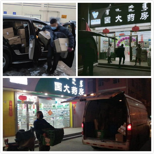 1月24日,應(yīng)仁和堂醫(yī)藥公司請(qǐng)求,為滿(mǎn)足市民防疫需求,臨時(shí)組織配送中心行政人員將口罩、消毒液、體溫計(jì)等其他防疫物資配送至各門(mén)店。