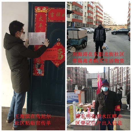 綜合辦公室職工蒙哥哲別、孟憲忠是資歷較早的城發(fā)人,具有較強(qiáng)的團(tuán)結(jié)友愛和責(zé)任意識。他們也用實際行動詮釋著國企職工的勇于擔(dān)當(dāng)和履職盡責(zé),2月19日他們分別到三干社區(qū)、麗苑社區(qū)參加一線防疫工作,為摩爾城片區(qū)隔離人員辦理解除隔離手續(xù),為小區(qū)進(jìn)出人員辦理登記、核查工作,他們中最長工作時間要從早上9點工作到下午5點,長時間、高強(qiáng)度工作的他們沒有一絲懈怠,一如既往的堅守崗位,辛苦付出。從截至目前,蒙哥哲別已辦理隔離人員解除手續(xù)30余人,孟憲忠他們所在的麗苑小區(qū)經(jīng)過嚴(yán)格管控,未發(fā)現(xiàn)一例發(fā)熱進(jìn)出人員。