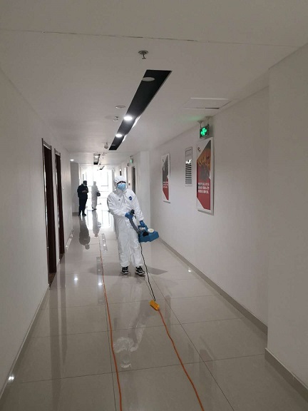 為進一步做好新型冠狀病毒感染的肺炎疫情防控工作,確保廣大職工身體健康,城發(fā)物業(yè)公司項目處邀請專業(yè)消殺隊伍采用無毒藥劑有效針對辦公樓內(nèi)食堂、電梯間、應急通道、走廊、衛(wèi)生間等公共區(qū)域進行全面消毒,確保公共區(qū)域衛(wèi)生安全。