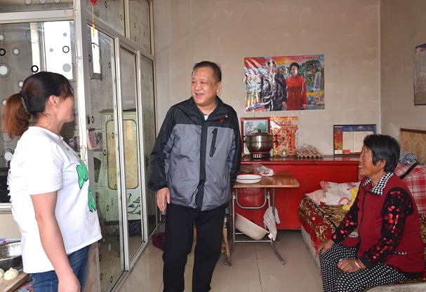 一下車,呂德育、吳利勤就走進了“一對一”包扶貧困戶翟金蓮老人家中,老人因患有腦梗,年歲又高,沒有勞動能力,導致家庭貧困。呂德育關切地詢問了老人近來的身體健康狀況,仔細地查看了家里的環(huán)境衛(wèi)生情況,并向老人送去了自己的慰問金。老人感激地指著習主席的畫像說:“共產(chǎn)黨好,習主席好,多謝你們領導干部關懷和照顧,吃不愁,穿不愁,居住環(huán)境也干凈了,病了也有村合作醫(yī)療。我們老人趕上了好時代,才過上了這樣幸福的生活。”在交談中,呂德育再三叮囑老人要保重自己的身體,囑咐村干部要多照顧老人,特別要注意老人的身體健康和居家環(huán)境衛(wèi)生,讓老人度過一個幸福、安詳?shù)耐砟?。張永、云崗、武云、趙永強也分別走訪調(diào)研了“一對一”包扶貧困戶,征求了貧困戶的意見和建議。