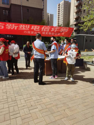 5月15日,城發(fā)物業(yè)公司在陽光美居小區(qū)進(jìn)行了防范電信詐騙宣傳活動。