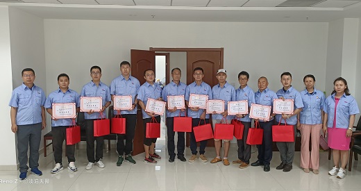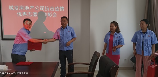 公司對勇于抗擊新冠肺炎疫情的15名志愿者進行了表彰。經(jīng)理李錚、副經(jīng)理韓雪峰同志為志愿者頒發(fā)了獎狀和紀念品。