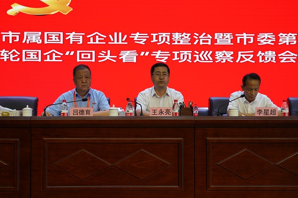 7月17日下午,城發(fā)公司召開了市屬國有企業(yè)專項整治暨市委第八輪國企回頭看專項巡察反饋會議。市紀(jì)委常委、監(jiān)委委員、市委巡察辦主任王永亮同志,第三專項整治組組長李星超同志參加了反饋會議。