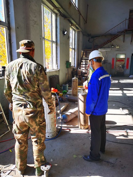 檢查未發(fā)現(xiàn)重大安全隱患。但檢查中發(fā)現(xiàn),供熱管網(wǎng)互聯(lián)互通工程施工現(xiàn)場所用氣瓶未按要求放置,東河苑小區(qū)換熱站施工人員未戴安全帽及違規(guī)用電,四醫(yī)院燃氣鍋爐房施工所用乙炔、氧氣瓶安全距離不夠及施工人員未戴安全帽等安全隱患。劉堅在現(xiàn)場責(zé)令施工單位和人員按照要求進行整改,并下發(fā)整改通知,確保施工安全,杜絕安全隱患。
