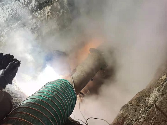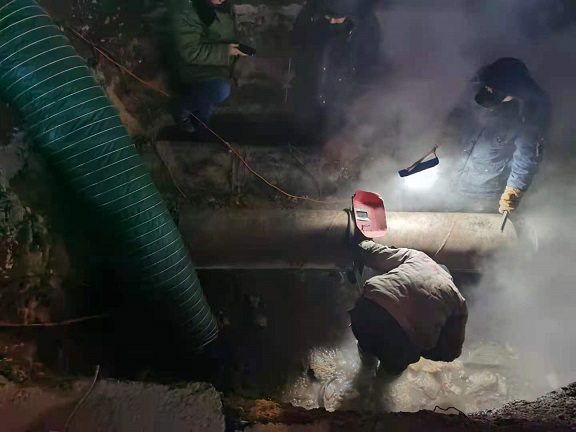 如果關(guān)閉閥門,會(huì)影響周邊正常供暖,因此,我們選擇了帶壓搶修、頂水作業(yè),該方案需要對(duì)高溫高壓水采取導(dǎo)流、防濺措施,也要克服管道高壓對(duì)焊接工藝的高要求,雖然難度大,安全作業(yè)要求高,但不影響用戶供暖!劉強(qiáng)說,