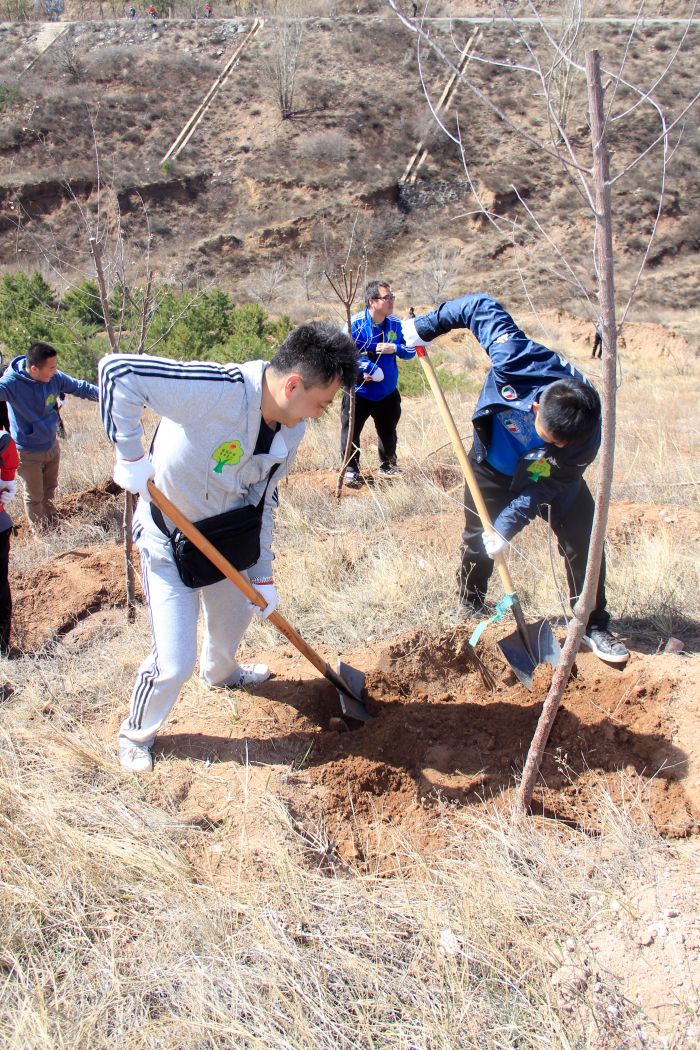 活動(dòng)現(xiàn)場(chǎng),公司團(tuán)員青年在團(tuán)委副書記郭振宇的帶領(lǐng)下,有序的加入到植樹活動(dòng)的行列中,植樹現(xiàn)場(chǎng)一派熱火朝天,大家干勁十足,配合默契,三人一隊(duì),五人一組,忙的不亦樂乎。在綠化技術(shù)人員的指導(dǎo)下,大家分工協(xié)作,有的挖坑,有的扶苗,有的培土到處都是忙碌的身影。大家不顧鞋褲上的泥土,一起揮鍬揚(yáng)土,把一棵棵樹苗穩(wěn)穩(wěn)地栽好,并精心地把土踩實(shí),為它們澆灌生命之水,經(jīng)過一個(gè)半小時(shí)的辛勤勞動(dòng),共栽植30余棵山桃樹,大家用自己的行動(dòng)和汗水把青年林裝點(diǎn)得更加生機(jī)盎然。