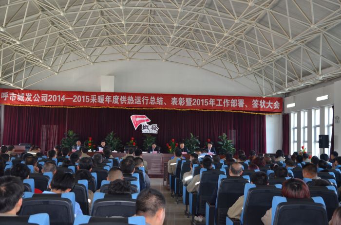 2015年5月12日,城發(fā)召開;2014~2015采暖年度供熱運行總結(jié)、表彰暨2015年工作部署、簽狀大會,公司領(lǐng)導(dǎo)班子成員、部室及分子公司負(fù)責(zé)人等200多名公司職工參會。