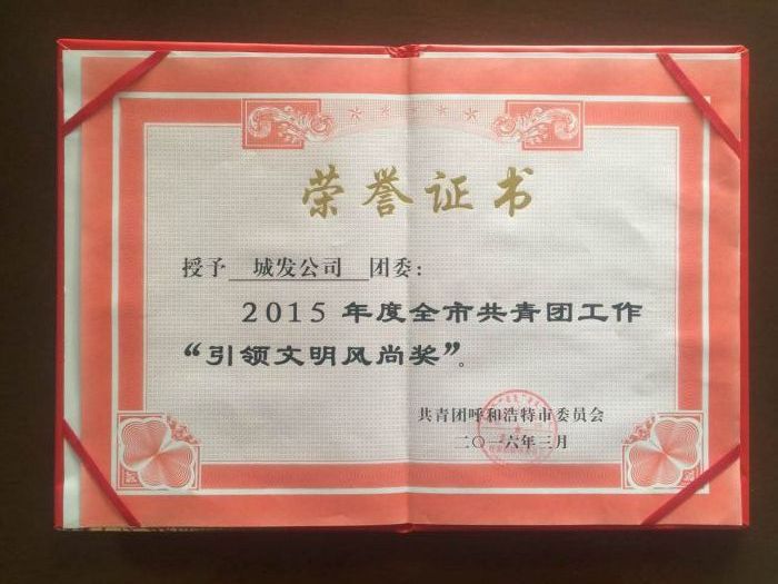 2016年3月15日,下午3時,在市政府黨政辦公大樓207會議室舉辦召開了;共青團呼和浩特市十六屆三次全委會議及市少工委五屆六次會議。會議上,全市23個團委進行了表彰。城發(fā)公司團委榮獲;全市共青團工作引領(lǐng)文明風尚獎、;信息工作先進獎兩個單項獎,獲得;2015年年度全市共青團工作綜合獎。
