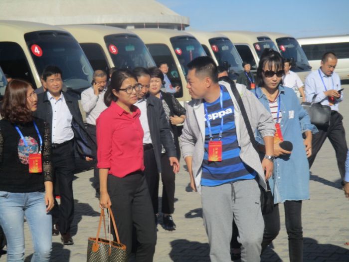 與會(huì)代表一行在建設(shè)中的內(nèi)蒙古少數(shù)民族群眾文化體育運(yùn)動(dòng)中心感受這一具有國(guó)際領(lǐng)先水準(zhǔn)的大型群眾性文化體育休閑場(chǎng)館所承載的創(chuàng)新發(fā)展、協(xié)同發(fā)展、綠色發(fā)展、開放發(fā)展和共享發(fā)展的理念。