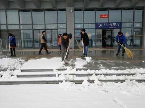 上午九點整,24名青年團員準時在城發(fā)客運公司站前廣場集合,對站前廣場上的積雪進行清掃。青年團員們不怕臟,不怕累,經過近一個小時的認真清理,干凈整潔的站前廣場呈現在大家眼前。