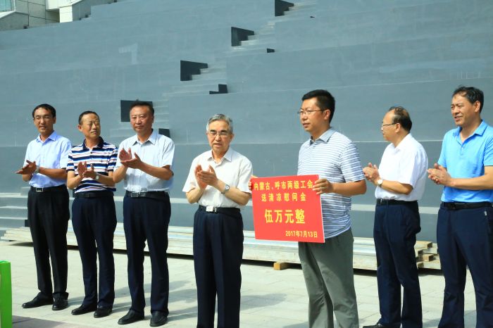 7月13日,內(nèi)蒙古自治區(qū)人大常委會副主任、總工會主席杭桂林,呼和浩特市政府副巡視員、黨組成員劉敏,市人大常委會副主任、總工會主席斯欽畢力格等一行向奮戰(zhàn)在我市重大項目重點工程內(nèi)蒙古少數(shù)民族群眾文化體育運動中心一線施工現(xiàn)場的工作人員進行送清涼慰問,發(fā)放5萬元慰問金,表達了兩級政府對我市重大項目重點工程一線單位職工的深切問候和關(guān)懷。城發(fā)公司董事長、黨委書記張瑞平,黨委副書記、工會主席張永等領(lǐng)導陪同。文\陳柯羽