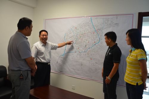 梁永慶副總經(jīng)理和他的團(tuán)隊(duì)討論工程施工問題。