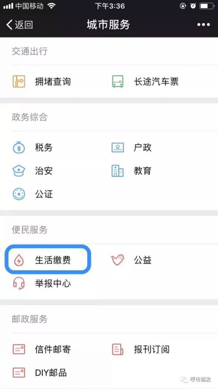 正確的微信繳費流程:我-錢包-城市服務(wù)-便民服務(wù)(生活繳費)-呼和浩特城發(fā)供暖繳費(官方)