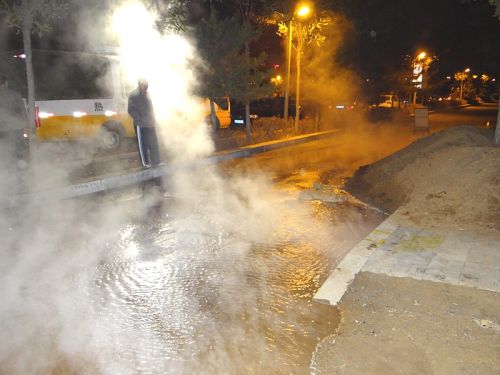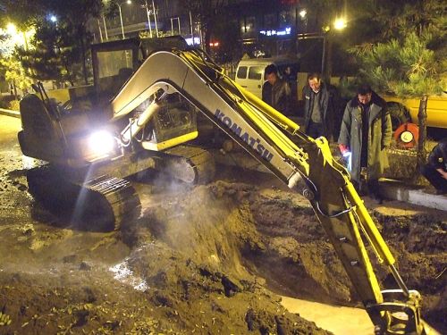 工作人員兵分幾路,對(duì)一次網(wǎng)和熱力站進(jìn)行泄水,同時(shí)在跑水地點(diǎn)進(jìn)行開挖,并將水抽干,待破損管網(wǎng)露出后,按預(yù)定技術(shù)方案進(jìn)行更換和焊接。時(shí)值入冬,夜間溫度已在零下,相關(guān)領(lǐng)導(dǎo)及搶修人員一直在現(xiàn)場(chǎng)工作,無人休息,毫無怨言。在寒風(fēng)中工作人員咬緊牙關(guān),爭(zhēng)分奪秒,連續(xù)奮戰(zhàn)了10多個(gè)小時(shí),終于在第二日凌晨7時(shí),成功將跑水事故處理完畢,并于12時(shí)恢復(fù)了熱力站正常運(yùn)行。