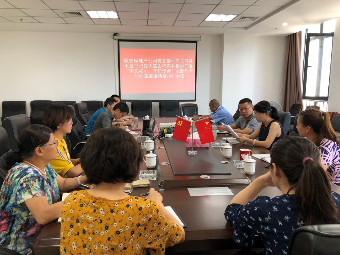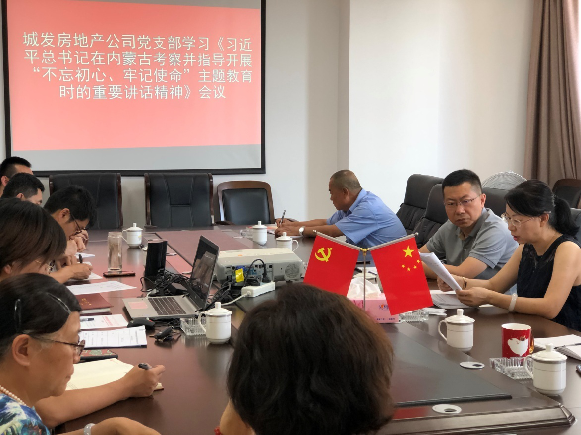 7月25日,房地產(chǎn)公司黨支部組織公司全體黨員干部和入黨積極分子,在城發(fā)集團(tuán)11樓會(huì)議室學(xué)習(xí)了習(xí)近平總書(shū)記在內(nèi)蒙古考察并指導(dǎo)開(kāi)展“不忘初心、牢記使命”主題教育時(shí)的重要講話(huà)精神。