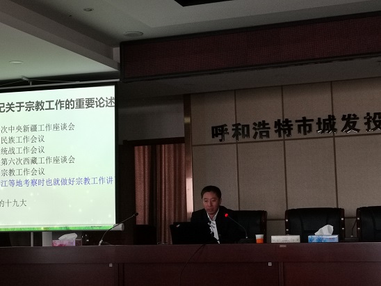 11月5日,城發(fā)公司黨委邀請市黨校黨史黨建教研室副教授、內(nèi)蒙古習近平新時代中國特色社會主義思想研究中心研究員蘇航同志在公司18樓會議室開展了“扎實做好新時代我區(qū)宗教工作——全面貫徹習總書記關(guān)于宗教工作重要論述”的專題講座。公司領(lǐng)導(dǎo)班子、全體中層干部約90人進行了集中學(xué)習。