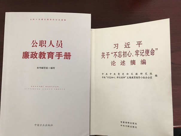 會(huì)上還學(xué)習(xí)了《習(xí)近平關(guān)于“不忘初心、牢記使命”重要論述選編》第五章——把政治建設(shè)擺在首位,不斷增強(qiáng)“四個(gè)意識(shí)”、堅(jiān)定“四個(gè)自信”、做到“兩個(gè)維護(hù)”?!豆毴藛T廉政教育手冊》國企領(lǐng)導(dǎo)人切莫損公肥私、國企領(lǐng)導(dǎo)人不得濫用經(jīng)營權(quán)等方面內(nèi)容。