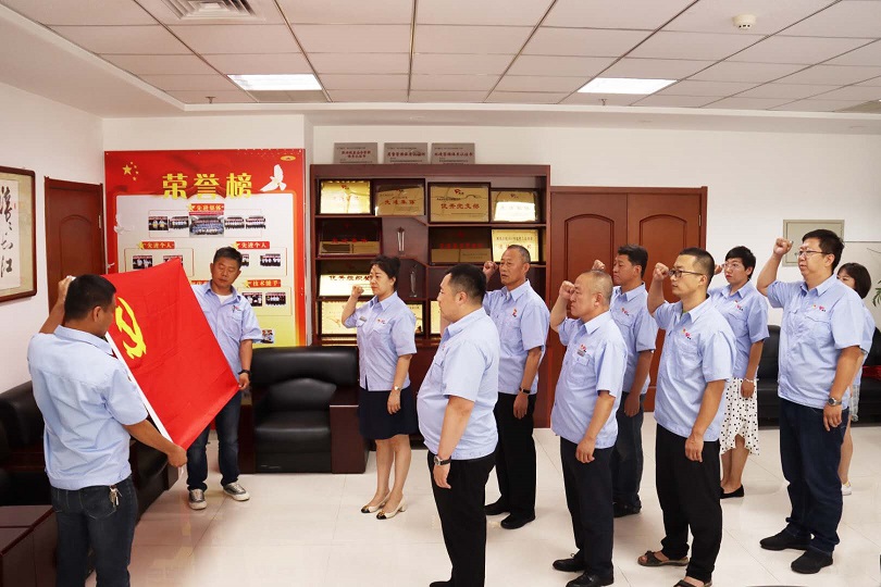 物業(yè)公司黨支部按照發(fā)展黨員的組織程序,吸收新鮮血液,充實了組織力量,今年按期轉(zhuǎn)正1名黨員,吸收了1名預(yù)備黨員。組織委員郝曉東同志為預(yù)備黨員史濤同志佩戴了黨徽,面對鮮紅的黨旗,在領(lǐng)誓人娜仁同志的逐句領(lǐng)讀下,史濤用慷慨激昂的語氣,莊嚴向黨旗宣誓,表達對黨的忠誠、為共產(chǎn)主義奮斗終身的決心,并表示,一定會珍惜共產(chǎn)黨員的光榮稱號,不負使命,立足崗位、踏實工作、謹守誓言、履行黨員義務(wù),為黨增光添彩!