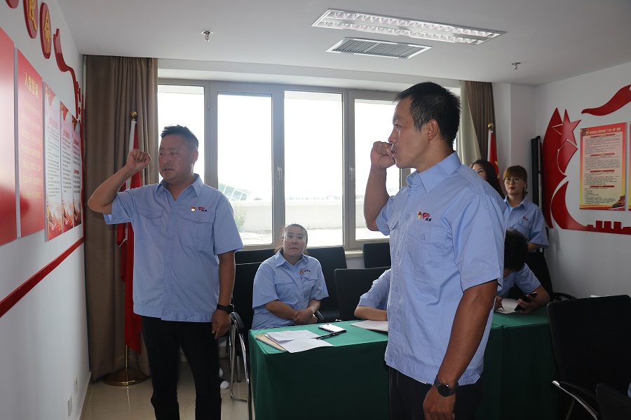 7月30日,客運公司黨支部組織全體黨員、預(yù)備黨員、發(fā)展對象、積極分子共16人開展預(yù)備黨員宣誓暨黨支部換屆集體學(xué)習(xí)活動。